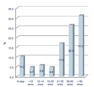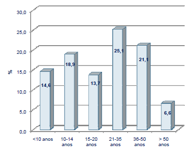 Numa amostra de 1273 participantes, no que diz respeito á idade, não foram disponibilizados os dados de 10,2%, com menos de 10 anos 4,7%, de 10 a 14 anos 5,8%, dos 15 aos 20 anos 4,8%, dos 21 aos 35 anos 17%, dos 36 aos 50 anos 26,3% e acima dos 50 anos 31,2%.