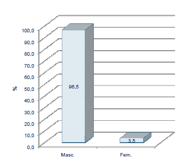O número de praticantes é maioritariamente do sexo masculino com 96,5% e apenas 3,5% do sexo feminino.
