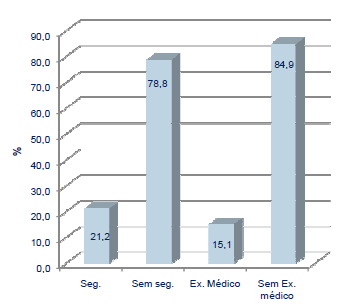 O número de praticantes com seguro médico é de 21,2% e sem seguro médico 78,8%.