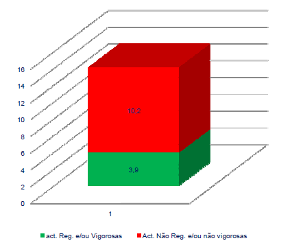 Actividade regulamentada e/ou vigorosa regista o menor número com 3,9% e as actividades não regulamentadas e/ou não vigorosa com 10,2%.