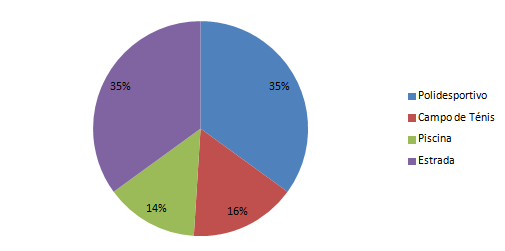 Os locais essencialmente escolhidos para a pratica são numa maior percentagem o polidesportivo e a estrada para sa frequentes caminhadas, enquanto a piscina e o campo de ténis aparecem como segunda escolha.