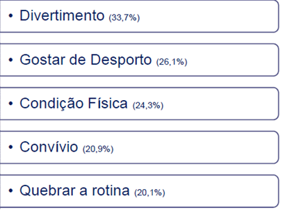 Os motivos que levam a 51% praticarem actividade física são por ordem decrescente: