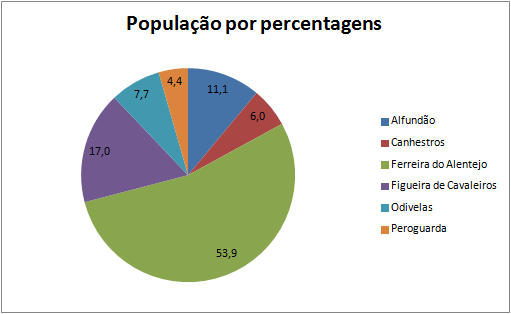 Nestes 2 gráficos circulares podemos observar as 6 freguesias, em que Ferreira do Alentejo tem 4866 dos 9030 inquiridos os correspondentes a mais de 50%, precisamente 53,9%, tornando-se assim a maior freguesia e com o maior número de habitantes, por sua vez registamos que Peroguarda é a freguesia menos populacional com 401 dos 9030 o correspondente a 4,4%.